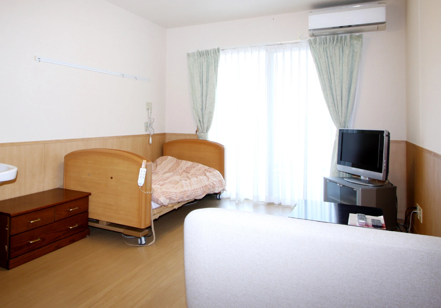 高齢者用トイレ、開放感のあるバルコニー、インターネット環境、万一に備えたナースコールの設置など、充実の環境を整えております。
