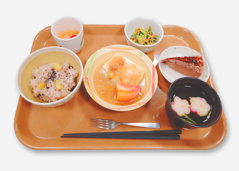 管理栄養士による、栄養バランスのとれた献立です。食事制限のある方や、アレルギーのある方にも、ひとりひとりに合ったお食事を提供いたします。